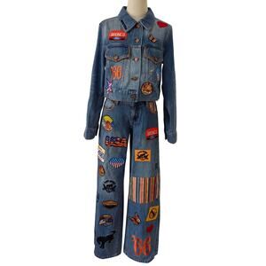 Introducing alice + olivia x Bronco, a celebration of fearless style, free-spirited adventure and women who can’t be tamed. Inspired by vintage Bronco ads, Americana nostalgia, and the bold glamour of the open road, this capsule merges rugged off-road utility with whimsical femininity. The Jeff jacket is oversized, cropped, and unapologetically extra. Crafted from 100% cotton denim and covered in maximalist embroidered patches-think butterflies, hearts, and flag motifs-it’s finished with red stitching and classic front flap pockets. It’s nostalgia with a wink, styled for now.