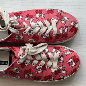 Alice & Olivia X Keith Haring platform sneakers in pink and red