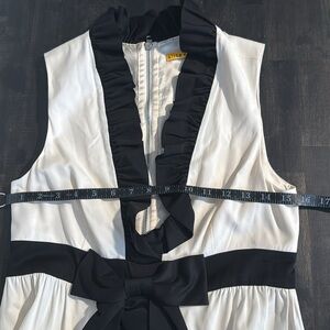 Alice + Olivia Y2K Black & White Ruffle Plunge Babydoll Cocktail Dress Bow
