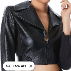 Alice + Olivia Yardley Vegan Leather Cropped Jacket Size Small