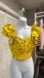 Alice + Olivia Yellow Floral Cropped Ruffle sleeve Top Sz M $350