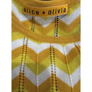 Alice Olivia Yellow Mini Pullover Puff Sleeve Knit Dress Chevron Pattern