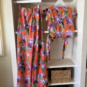 Alice + Olivia Zabel Floral-Print Cropped Wrap Top (Size 0)