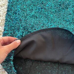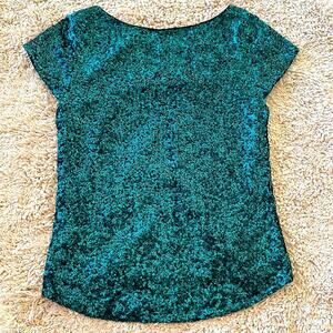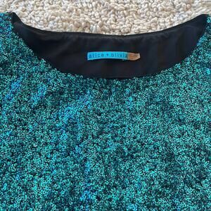 Alice + Olivia aqua blue sequin shirt sleeve blouse