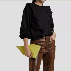 Alice + Olivia black ruffle Carrie shirt/sweater size S