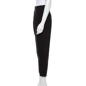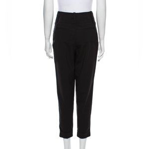 Alice + Olivia black virgin wool straight leg pants featuring a high-rise waist, pleats, slit pockets, zip closure, and cuffed hems. Listed as size 2 but run a little loose so could fit a size 4 as well.