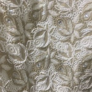 Sequins cream and white flower pattern on front