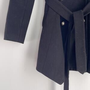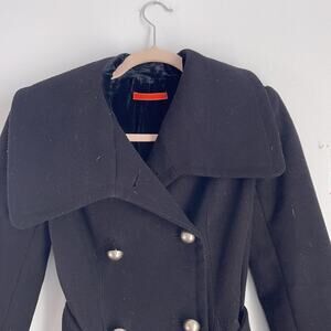 Alice + Olivia double breasted belted long line silk blend lining coat; size tag has been removed; SEE MEASUREMENTS; missing a button underneath collar; not noticeable when worn; buttons need to be seen on tighter