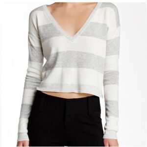 Alice & Olivia gray and white Striped Cropped V neck Sweater - Small. NWT