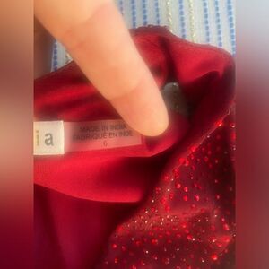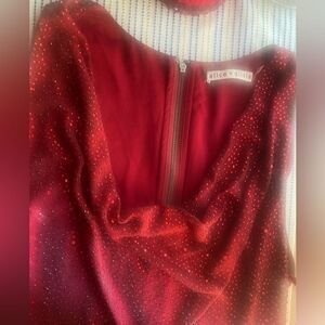 Wine red jumsuit with straight pants and has crystals in different sizes of the same color used in very good condition