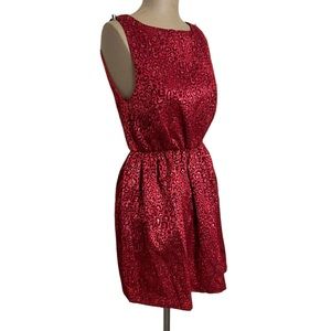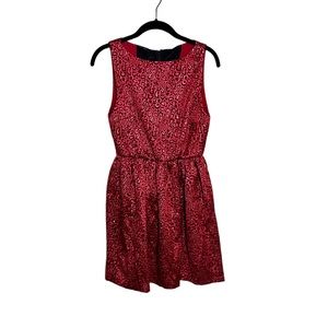 Alice + Olivia Red Metallic Leopard Print Bubble Dress. It is also referred to as the "Vita Red Metallic Jacquard Sleeveless Animal Print Mini Dress".