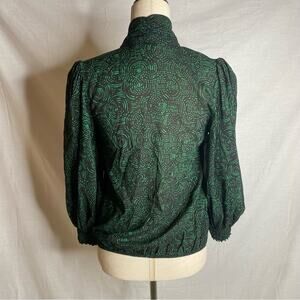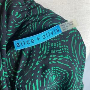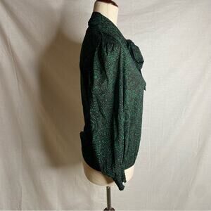 Alice + Olivia silk blend blouse tie neck bow long sleeve printed smocked