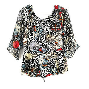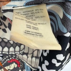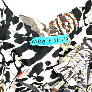 Alice + Olivia size XS silk blouse elbow length sleeves ruffle hem black white