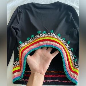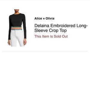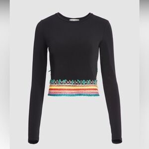 Stunning crop top from Alice and Olivia. Black Longsleeve with some stretch and neon multicolored embroidery. Great quality, like new. Side invisible zipper