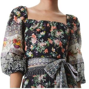 Alice + Olivia Clarabelle Silk Cotton Blend Tie Long Sleeve Top size small