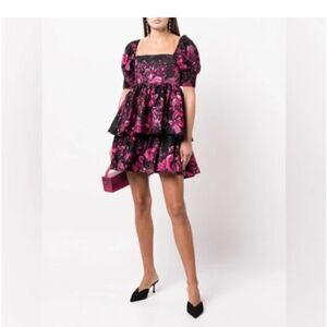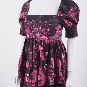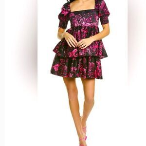 Alice + Olivia Emmalou Puff-Sleeve Tiered Mini Dress NWT Size 0
