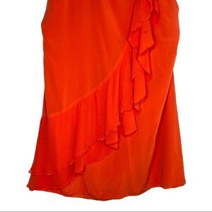 Alice + Olivia Orange Halter Ruffle Tie Top Medium