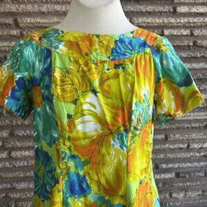Alice Polynesian Fashions 60s Colorful Floral Tiki Maxi Muumuu Caftan Dress