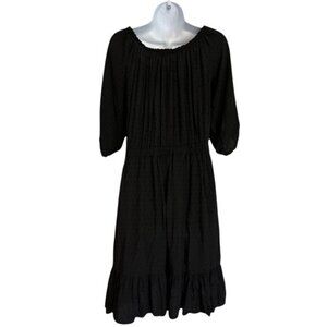 Alice Rinaldi Clip Dot Dress Black 1/2 Sleeve Ruched Made in Italy Size 2