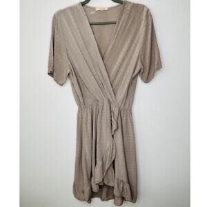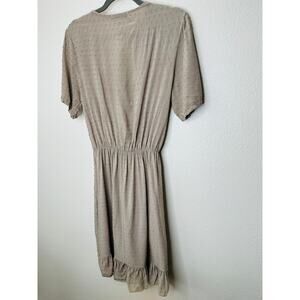 Alice Rinaldi Taupe Tonal Polka Dot Short Sleeve Faux Wrap Ruffle Dress M