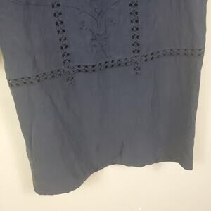 Gently used. Size 4. Color black. 3/4 length sleeve dress. Crochet detail in the front. Crew neck. Keyhole in the back. Silk/linen blend.