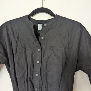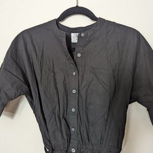 Poplin one-piece complete with a buttoned placket, round collar and functional button cuffed short sleeves.