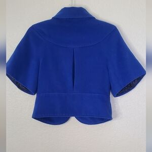 Alice Temperly for Target beautiful Royal Blue Wool Blend Cropped Jacket Caped Coat Ruffled front and signature buttons Size Medium