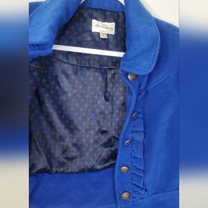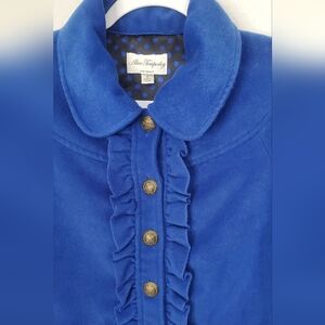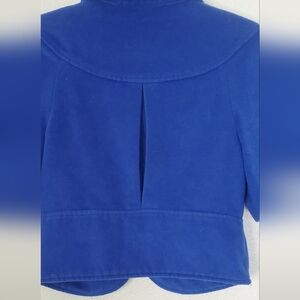 Alice Temperly for Target beautiful Royal Blue Wool Blend Cropped Jacket Caped Coat Ruffled front and signature buttons Size Medium