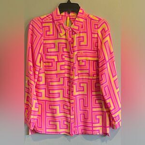 Alice & Trixie 100% Silk Colorful Geometric Blouse Size XS