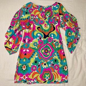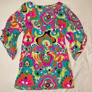 Alice & Trixie 100% Silk Half Sleeve Shift Mini Dress | Pucci-Esque Print