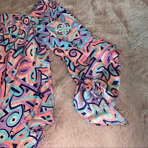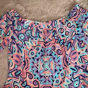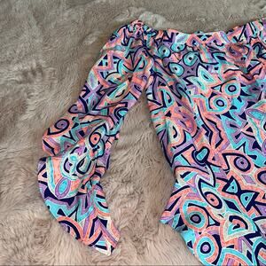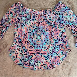 Alice & Trixie Pink Purple Blue Off-The-Shoulder Preppy Silk Blouse Medium