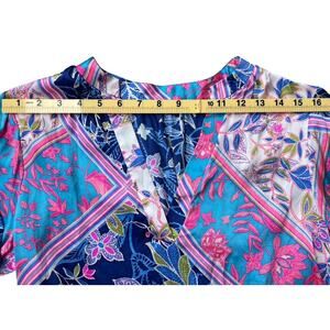 * boho floral blouse, Alice & Trixie silk top, tropical print blouse, resort wear, vacation blouse, preppy bohemian, spring summer top, colorful silk shirt, statement sleeves, relaxed fit blouse, American-made fashion