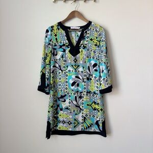 Alice & Trixie Silk Shift Dress XS Geometric Print Black Grey Blue