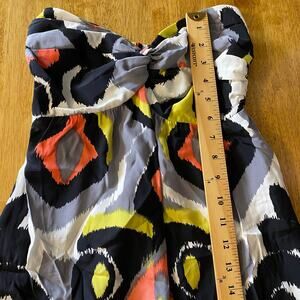 Alice & Trixie Silk Strapless Retro Print Smocked Mini Dress Size Small Womens