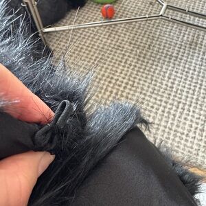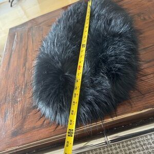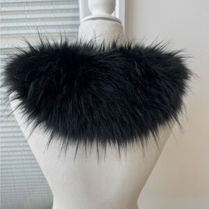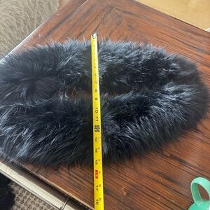 I do not think this is a real fur. Faux fur collar. Connects at bottom with a hook.