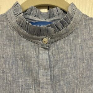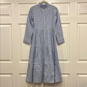 Alice Walk Chambray Cotton Linen Blend Dress Maxi Long Sleeve Blue Size XS