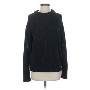 Alice Walk Cotton Fisherman Crewneck Knit Sweater Black small