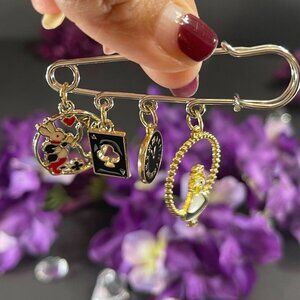 Alice Wonderland Lapel Pin Rabbit Black Safety Pin Enamel Badge Brooch Gift Pin