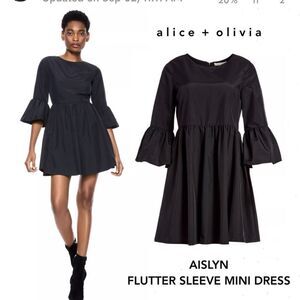 Alice and Olivia Aislyn Flutter Sleeve Black Zipper Back Mock neck Dress 10 NWT