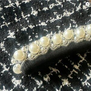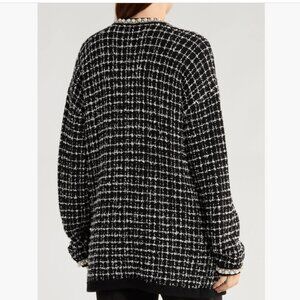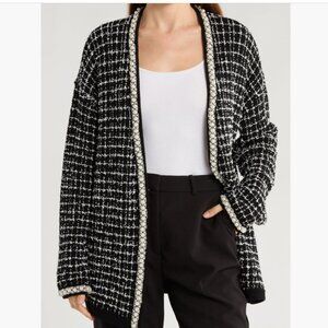 Pearly beads elegantly frame a tweed-like cardigan knit in a slouchy, oversized fit for an ultracozy feel.