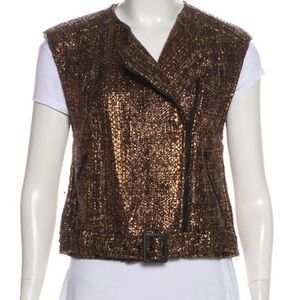Alice and Olivia Brown Metallic Zip up vest