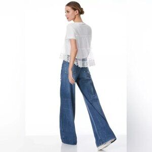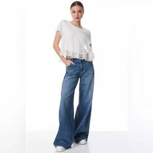 Alice and Olivia Dreema tiered tee Short Sleeve Top White Size S