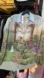 Elegant blouse with a vibrant floral and scenic print. Features a mix of colors including blue, green, and pink.