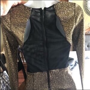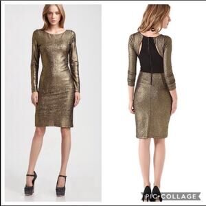 Alice and Olivia Gold Metallic Bodycon Midi Cocktail Party Dress