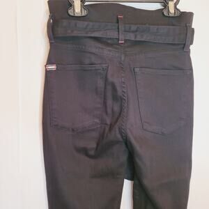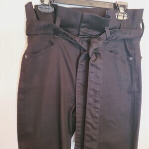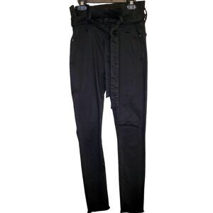 Alice+Olivia Good Night Fever Belted Paper Bag Waist Raw Hem Ankle Black Jeans Size 25