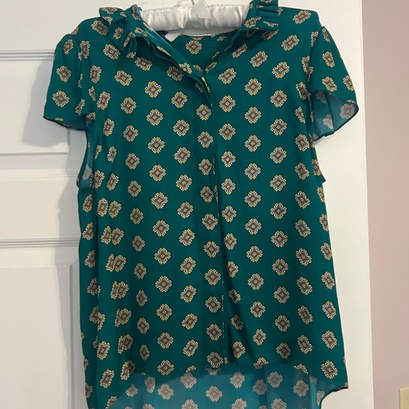 Alice and Olivia Green Short Sleeve Teal Blouse, size medium