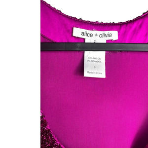 Alice and Olivia Hot Pink Sequins Mini Dress Size Small . Scoop neckline. This dress is such a vibe, featuring hot pink sequins! Condition: pre-owned, no holes, stains or defects noticed. Dry clean only.