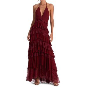 Alice and Olivia Liana V Neck Ruffle Maxi Dress