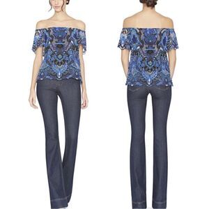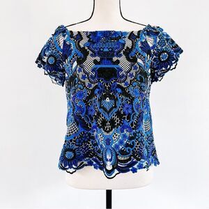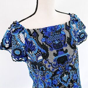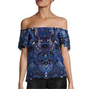 Alice and Olivia Maxie Off Shoulder Guipure Lace Short Sleeve Top Sz S