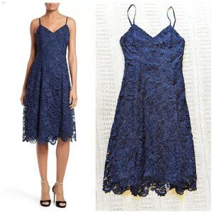 Alice and Olivia Naomi Floral Lace Midi Dress Size 8 Flare Cocktail Sapphire